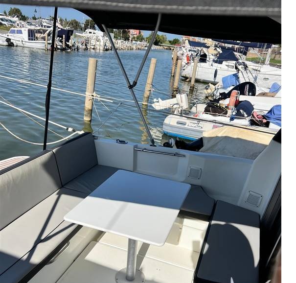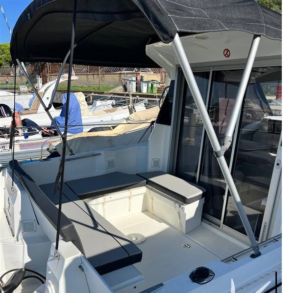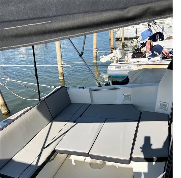 BARCA CON ALLESTIMENTO PREMIERE, ACCESSORIATA DI TAPPEZZERIA TESSUTO, PACK COMFORT, KIT ORMEGGIO E ANCORAGGIO, KIT TAVOLO E PRENDISOLE DI POPPA, TELO COPRISOLE NEL POZZETTO COMPLETO DI OMBREGGIANTI, SCALETTA GAVONE POZZETTO, PORTAPACCHI SUL TETTO, PIATTAFORME POPPIERE, CUSCINI PRENDISOLE DI PRUA