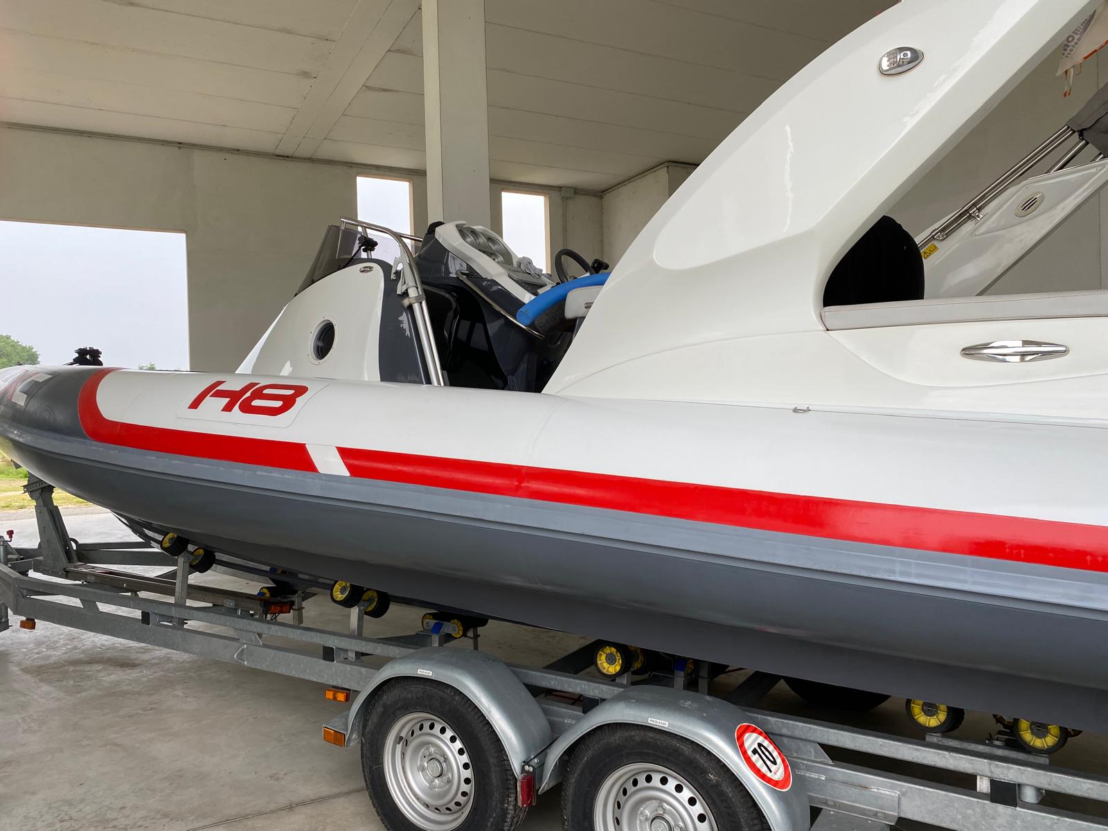 Descrizione H8 in buone condizioni, dal design sportivo. La cabina interna, spaziosa e ben ventilata, è dotata di wc marino, offrendo comfort anche nelle navigazioni più lunghe.