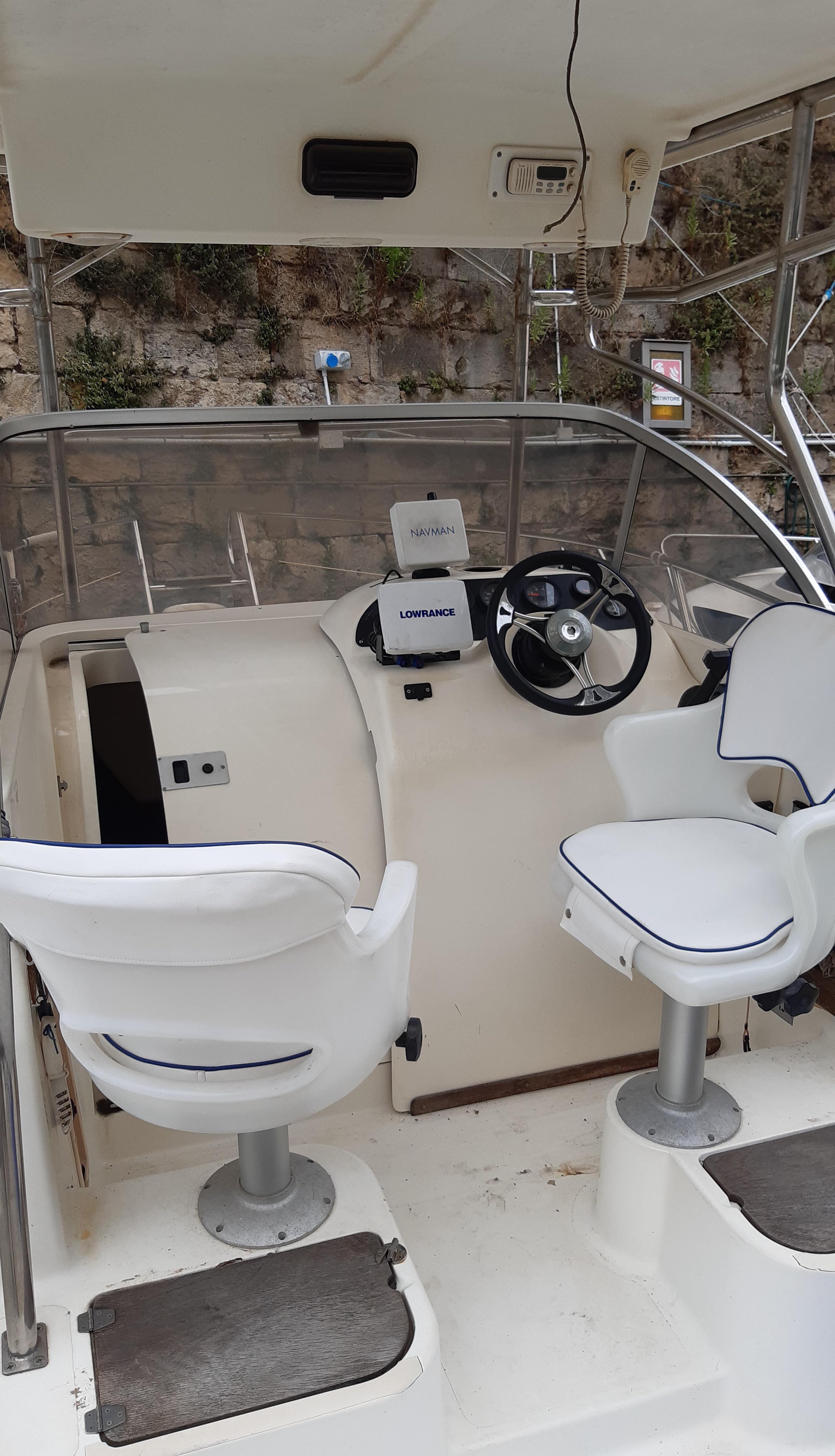 Accessori Salpa ancora elettrico, Lavandino, Frigo, Doccetta, Presa a mare per lavaggio ponte, Vasca del vivo, telo copri barca, vhf fisso, impianto stereo, GPS cartografico, ecoscandaglio, impianto stereo, Serbatoio benzina 250 lt in acciaio