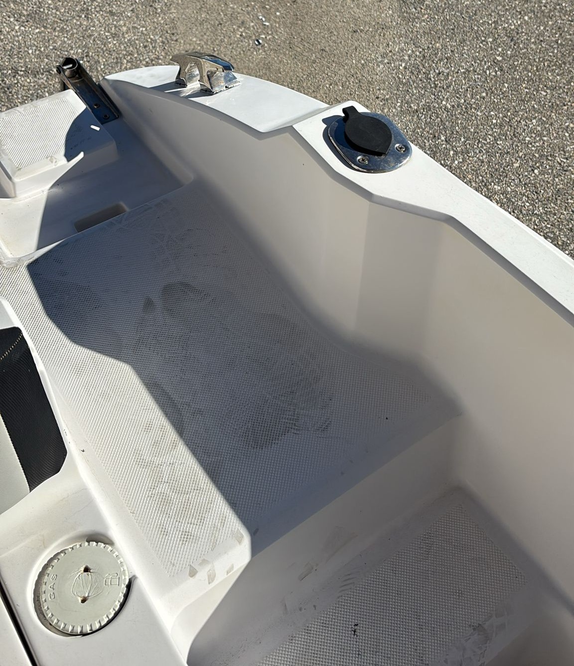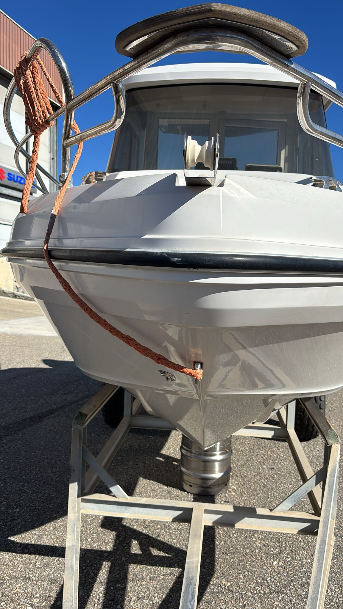 Ha un pozzetto di poppa con sedute apribili, un comodo prendisole a prua ed una cabina per due persone.