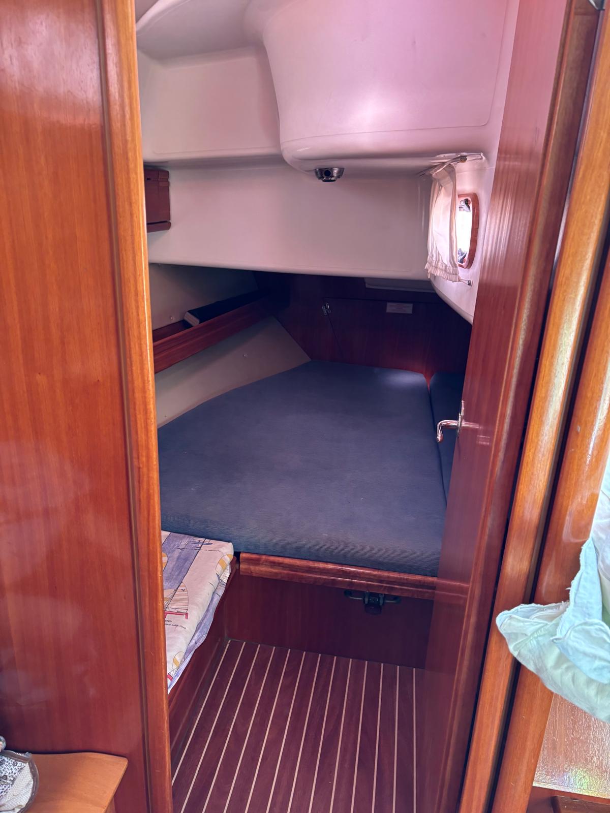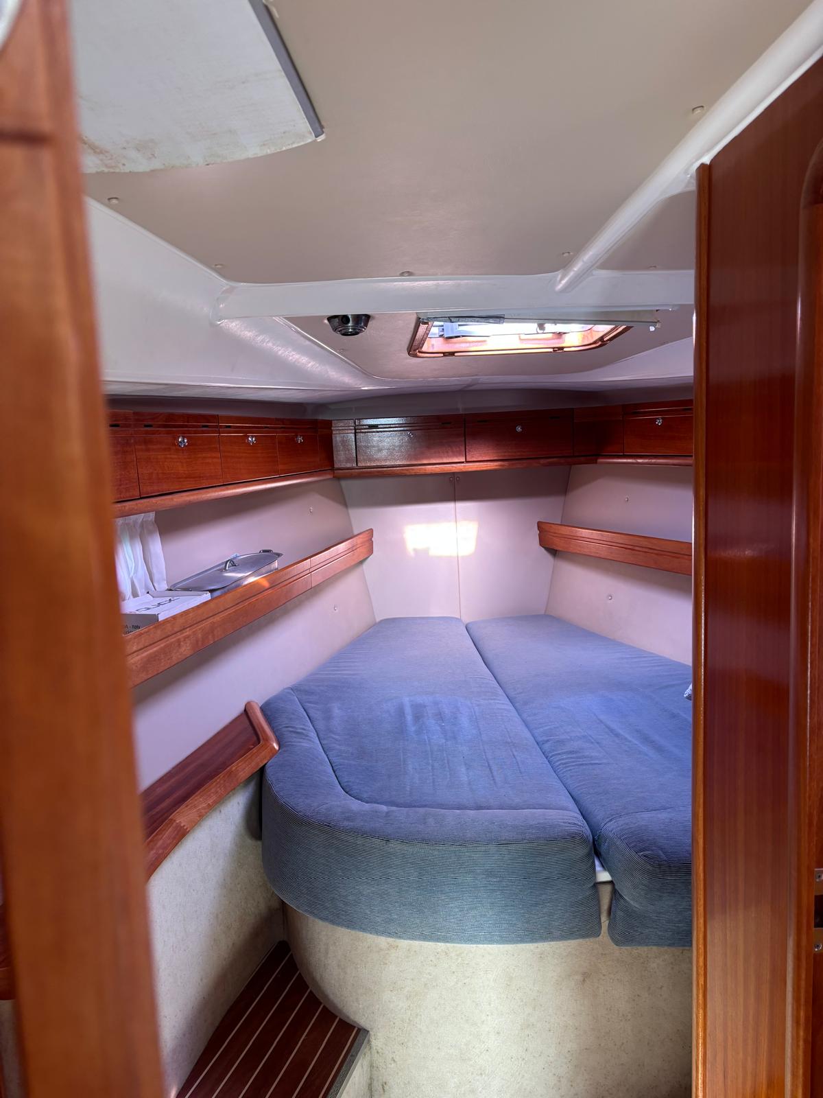 Cabina armatoriale a prua con letto matrimoniale bagno in locale separato.